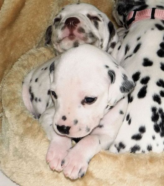 Auch diesmal gab es wieder viel Neues im noch so jungen Leben unserer A-chen. So waren Tante Xhosa und Papa Kapo das erste mal zu Besuch. Während Xhosa den ganzen Tag in der Welpenkiste verbringen könnte, war Papa Kapo nur mittelprächtig beeindruckt. In 2 Wochen wenn die Kleinen richtig toben können, sieht das bestimmt anders aus.
